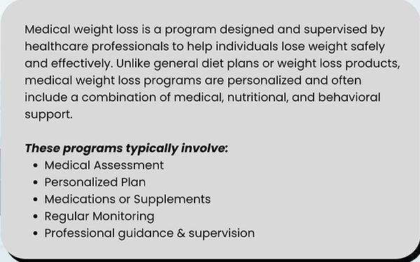 Not a Substitute for Medical Care: Our services complement but do not replace care from your primary healthcare provider. Always consult your physician before beginning any weight loss or wellness program.